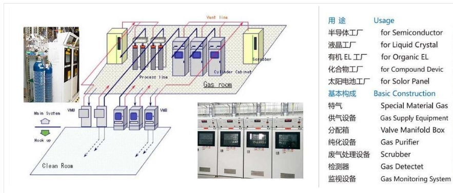 2、光電與微電子領(lǐng)域:在電子材料生長、襯底制備、氧化工藝、外延工藝及化學(xué)氣相淀積技術(shù)中,高純氣體管道系統(tǒng)負責輸送純度要求極高的工藝氣體。這些氣體直接影響半導(dǎo)體表面特性,微量雜質(zhì)都可能降低產(chǎn)品成品率。