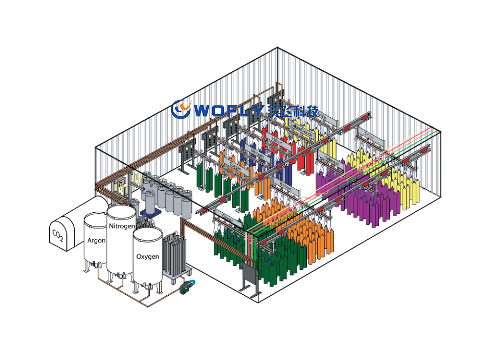什么是氣體充裝系統(tǒng)?工業(yè)氣體按組份可分為單一品種氣體的工業(yè)純氣和二元或多元?dú)怏w的工業(yè)混合氣。國家標(biāo)準(zhǔn)《瓶裝壓縮氣體分類》(GB16163-1996)中,根據(jù)工業(yè)純氣在氣瓶內(nèi)的物理狀態(tài)和臨界溫度進(jìn)行分類,并按其化學(xué)性能,燃燒性、毒性、腐蝕性進(jìn)行分組。第1類為永久氣體,其臨界溫度〈-10℃,在充裝時(shí)以及在允許的工作溫度下儲運(yùn)和使用過程中均為氣態(tài),分為a、b兩組:a組為不燃無毒和不燃有毒氣體(包括氧、 氮、氬等),b組為可燃無毒和可燃有毒氣體(包括氫等)。第2 類為液化氣體,其臨界溫度≥-10℃, 包括高壓液化氣體和低壓液化氣體。其中,高壓液化氣體臨界溫度≥-10℃、且≤70℃,在充裝時(shí)為液態(tài),但在允許的工作溫度下儲運(yùn)和使用過程中隨著溫度升高至臨界溫度時(shí)即蒸發(fā)為氣態(tài),分為a、b、c 三組:a組為不燃無毒和不燃有毒氣體(包括二氧化碳);b組為可燃無毒和自燃有毒氣體;c 組為易分解或聚合的可燃?xì)怏w。低壓液化氣體臨界溫度〉70℃,在充裝時(shí)以及在允許的工作溫度下儲運(yùn)和使用過程中均為液態(tài),也分為a、b、c三組:a組為不燃無毒和不燃有毒及酸性腐蝕氣體(包括氯);b 組為可燃無毒和可燃有毒及堿性腐蝕氣體(包括氨);c 組為易分解或聚合的可燃?xì)怏w。第3類為溶解乙炔, 在壓力下溶解于氣瓶內(nèi)溶劑的氣體,僅有a組:易分解或聚合的可燃?xì)怏w(包括乙炔)。此分類是混合氣配制的基礎(chǔ)。