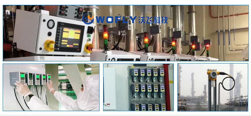 以可燃氣體檢測器為例,當氣體探測器檢測到空氣中的可燃氣體時,將氣體濃度的大小轉(zhuǎn)化為相應的4-20mA電流信號,由連接電纜傳送至深圳沃飛科技有限公司的監(jiān)測報警控制系統(tǒng),監(jiān)測報警控制器再將電信號轉(zhuǎn)化為數(shù)字信號,在液晶顯示器上顯示出氣體的濃度值,當檢測值大于報警設定值時,便由蜂鳴器或警示燈發(fā)出報警信號,提示工作人員引起注意,或啟動連鎖排風系統(tǒng)。