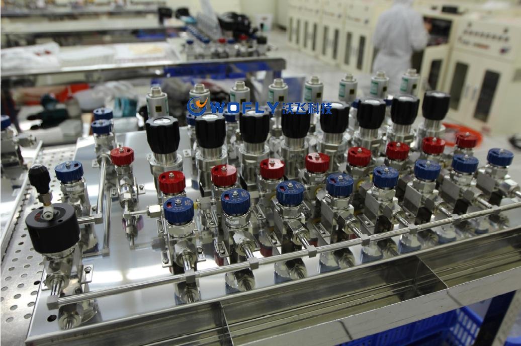 特氣輸送面板是氣源部分非常重要的控制單元。一般工藝氣體從鋼瓶出來(lái),經(jīng)過(guò)高壓控制盤面時(shí),都實(shí)現(xiàn)了一次調(diào)壓、過(guò)濾、流量穩(wěn)定、吹掃、抽真空、壓力偵測(cè)等功能。不同的氣體和工藝需求,可以根據(jù)實(shí)際情況定制具體功能?,F(xiàn)階段,越來(lái)越多的高校實(shí)驗(yàn)室引入了ICP、PVD、PEVCD等設(shè)備進(jìn)行芯片鍍膜、刻蝕方面的研究,這些工藝氣體多是硅烷、乙烯、溴化氫等毒腐、易燃易爆性氣體,對(duì)于氣源的控制要求非常高,也給供氣面板提出了很多要求。