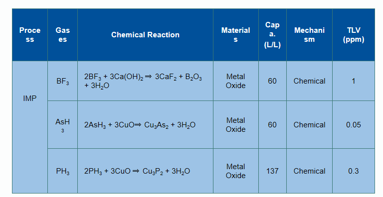 制程過程產(chǎn)生的廢氣在風(fēng)機(jī)壓力下由入氣口管道進(jìn)入主吸附桶,廢氣中需要處理的氣體組分在主吸附桶中被吸附劑吸附處理,吸附后的廢氣經(jīng)變色球檢驗(yàn)后從出氣口排出,變色球的指示劑會(huì)隨著氫鍵之濃度增加度的不同產(chǎn)生顏色的變化,通過的氣體是中性氣體,不變色,由出氣口排出(PFCs不能用變色球辨別,因?yàn)樗旧硎侵行詺怏w)。