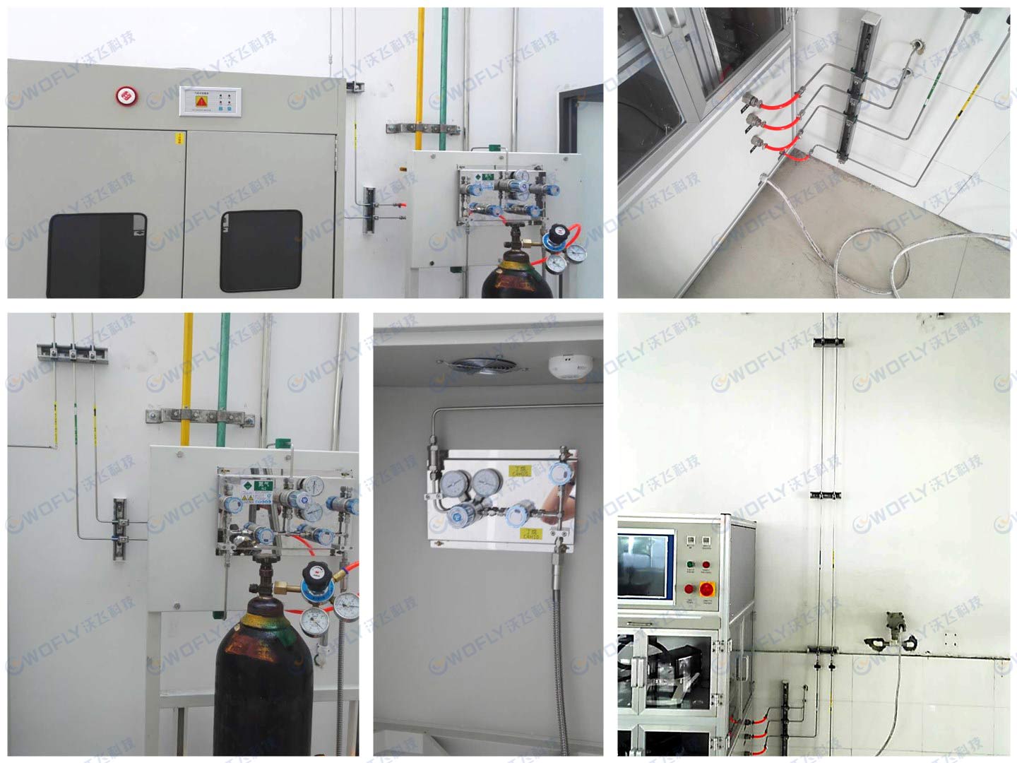 同時,按照國標(biāo)要求,將所用全部氣體存放于儲氣間,并實現(xiàn)集中輸送,組成實驗室集中供氣系統(tǒng)。實現(xiàn)人氣分離,保障分析測試人員在實驗中免受有毒有害氣體的侵害。